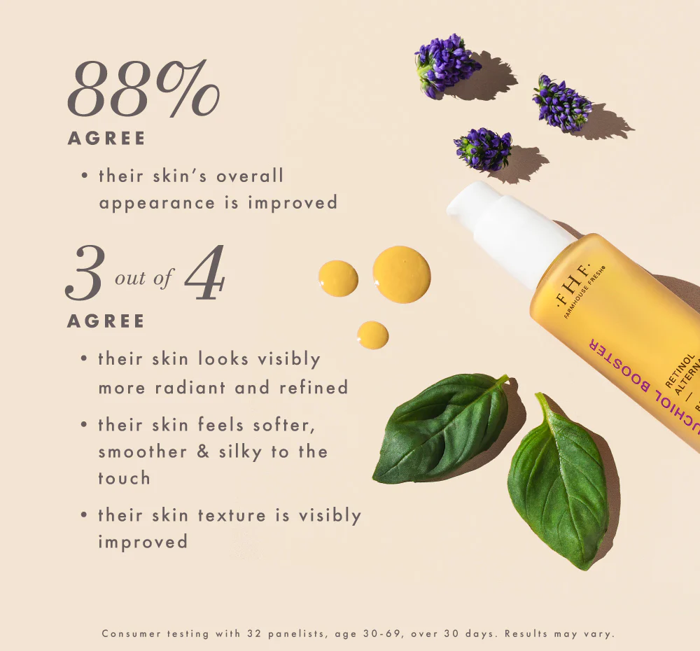 This plant-based retinol alternative brings a stunning boost to complexions with a silky-light touch and velvety-soft feel on skin. Enhanced with niacinamide, vitamin C, licorice root, and firming peptides, plus FHF-grown organic black opal basil for a super refined new complexion. Finished with a NEW soft, fruity scent you’ll love.